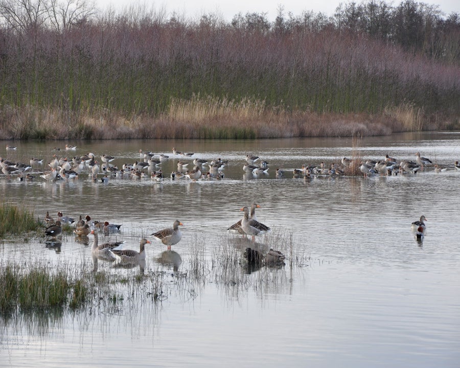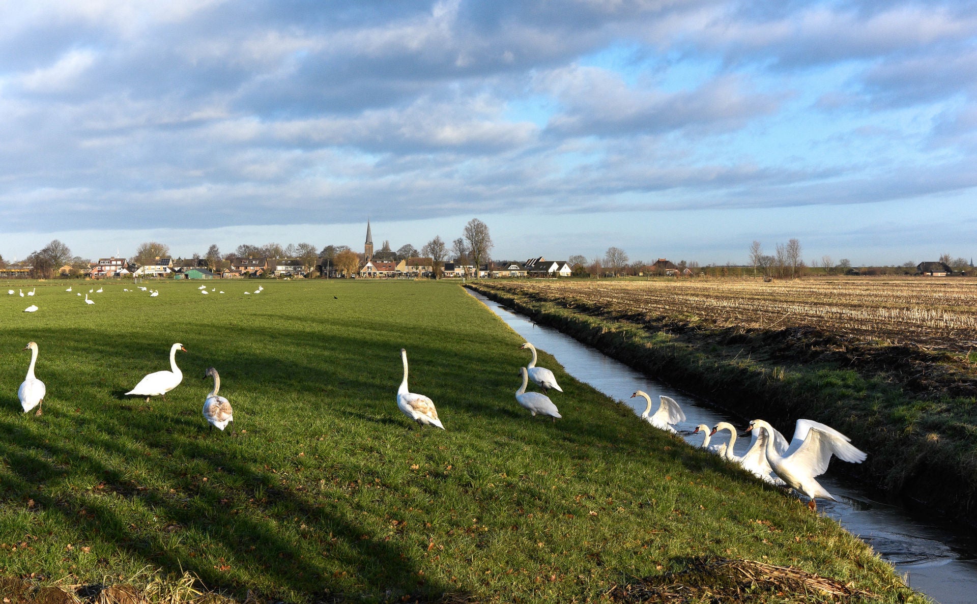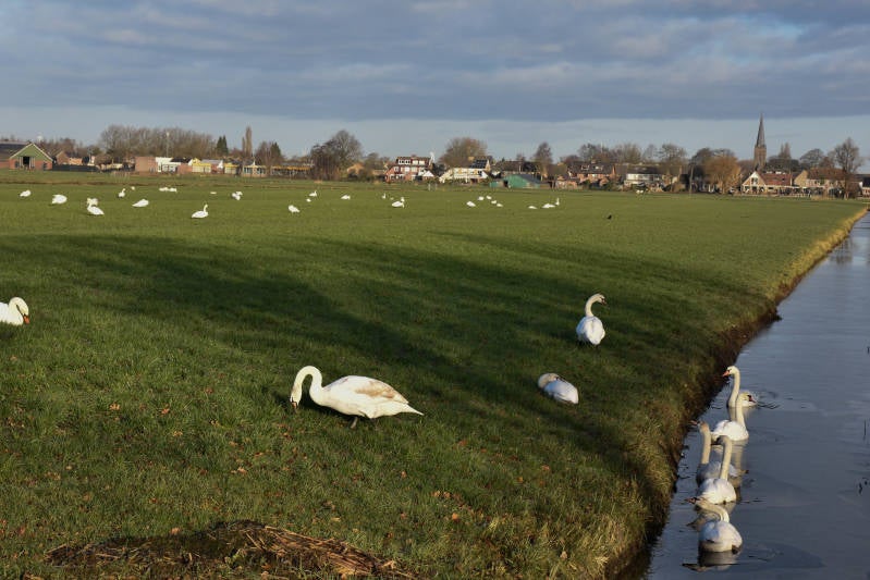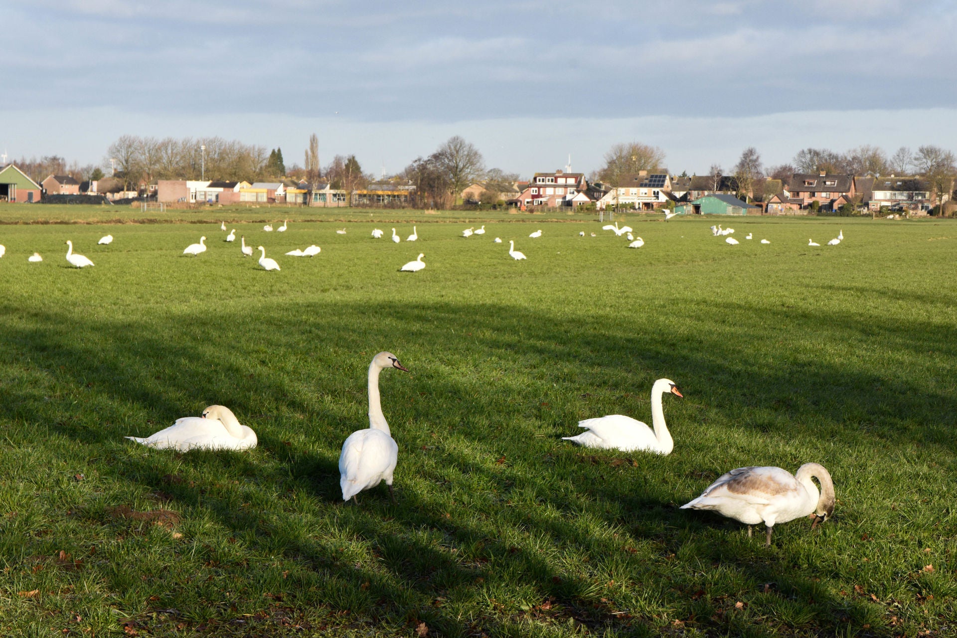 Meer dan 100 zwanen kiezen een weiland in Everdingen uit als foerageerterrein