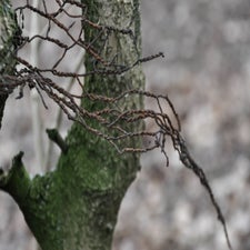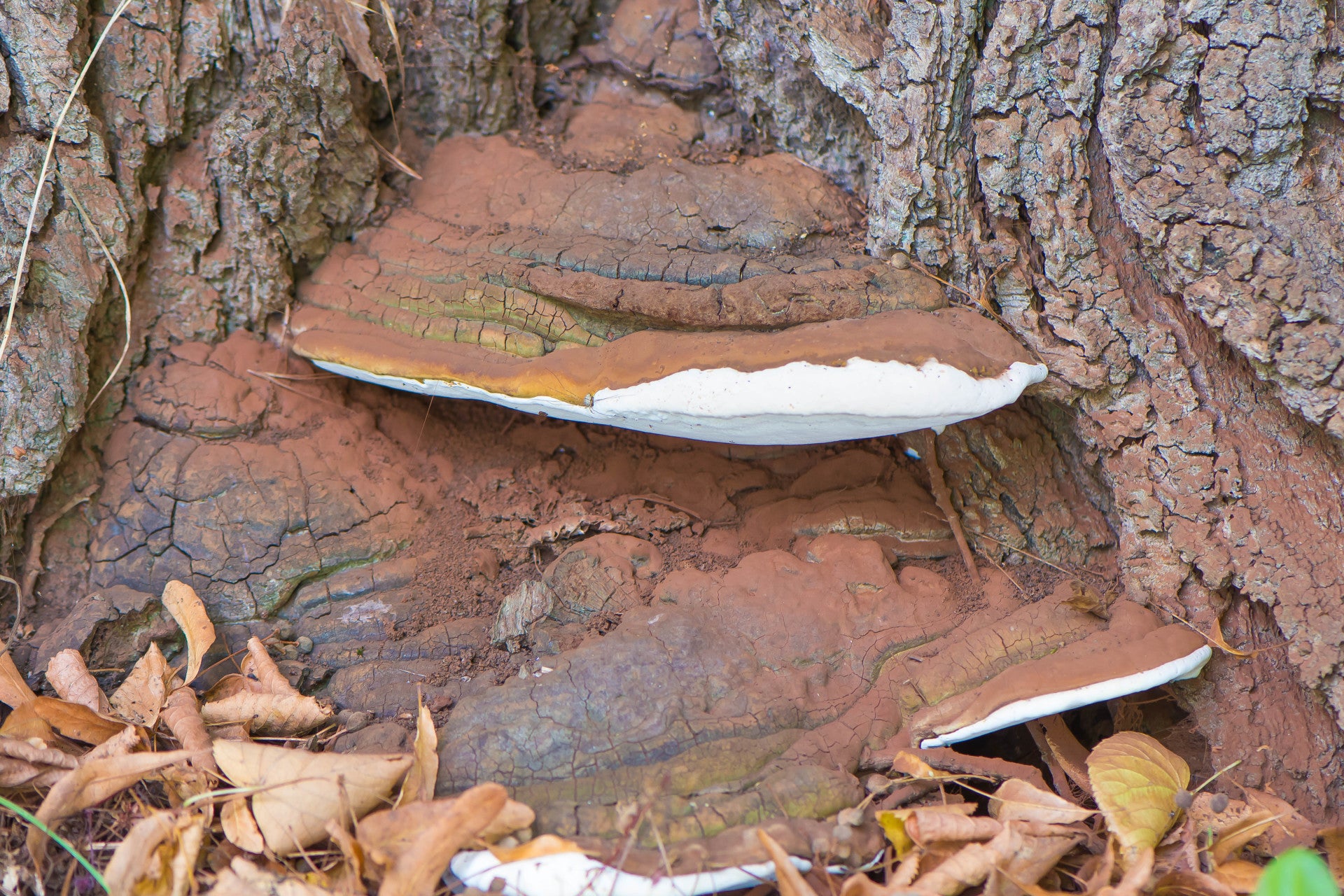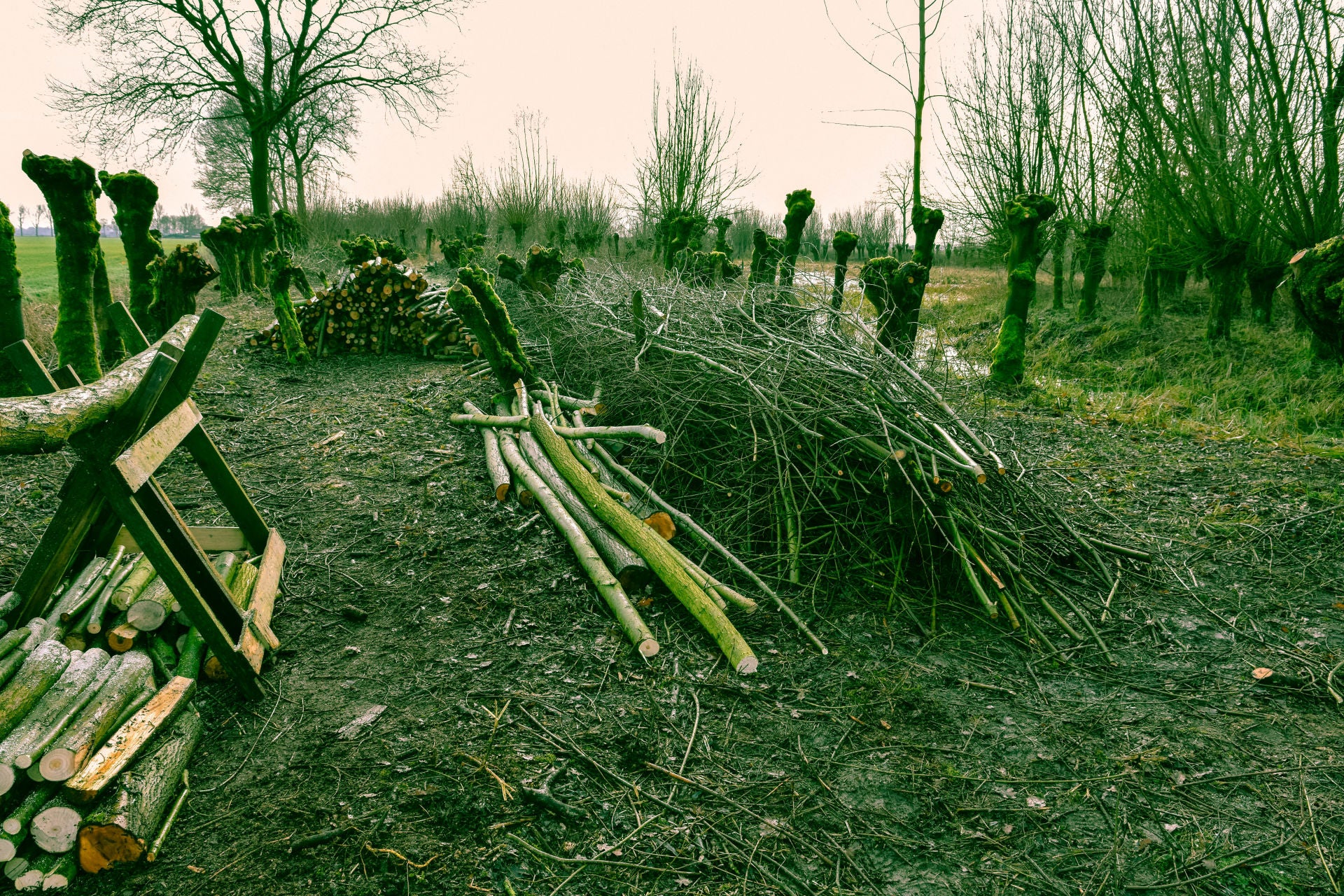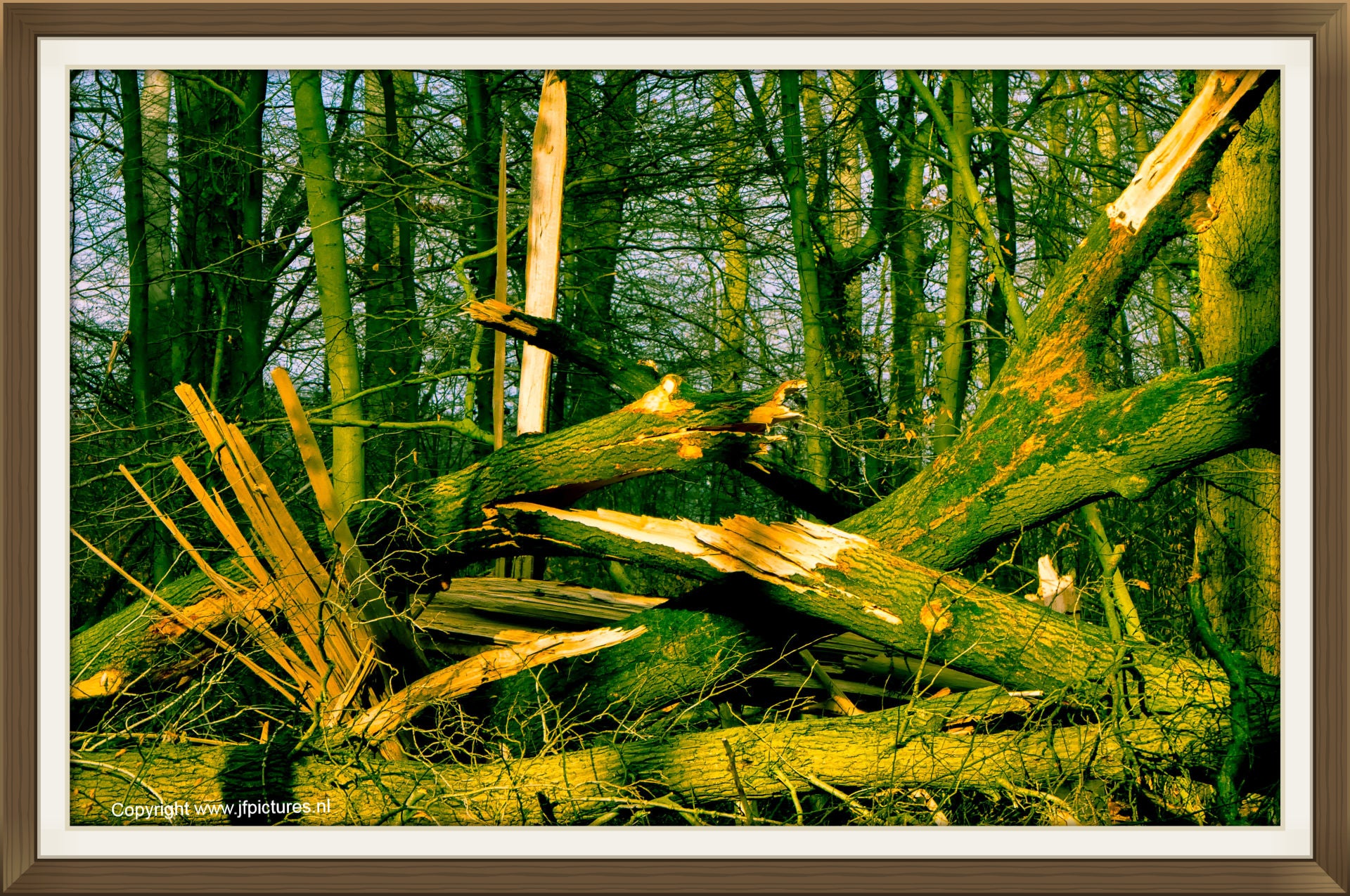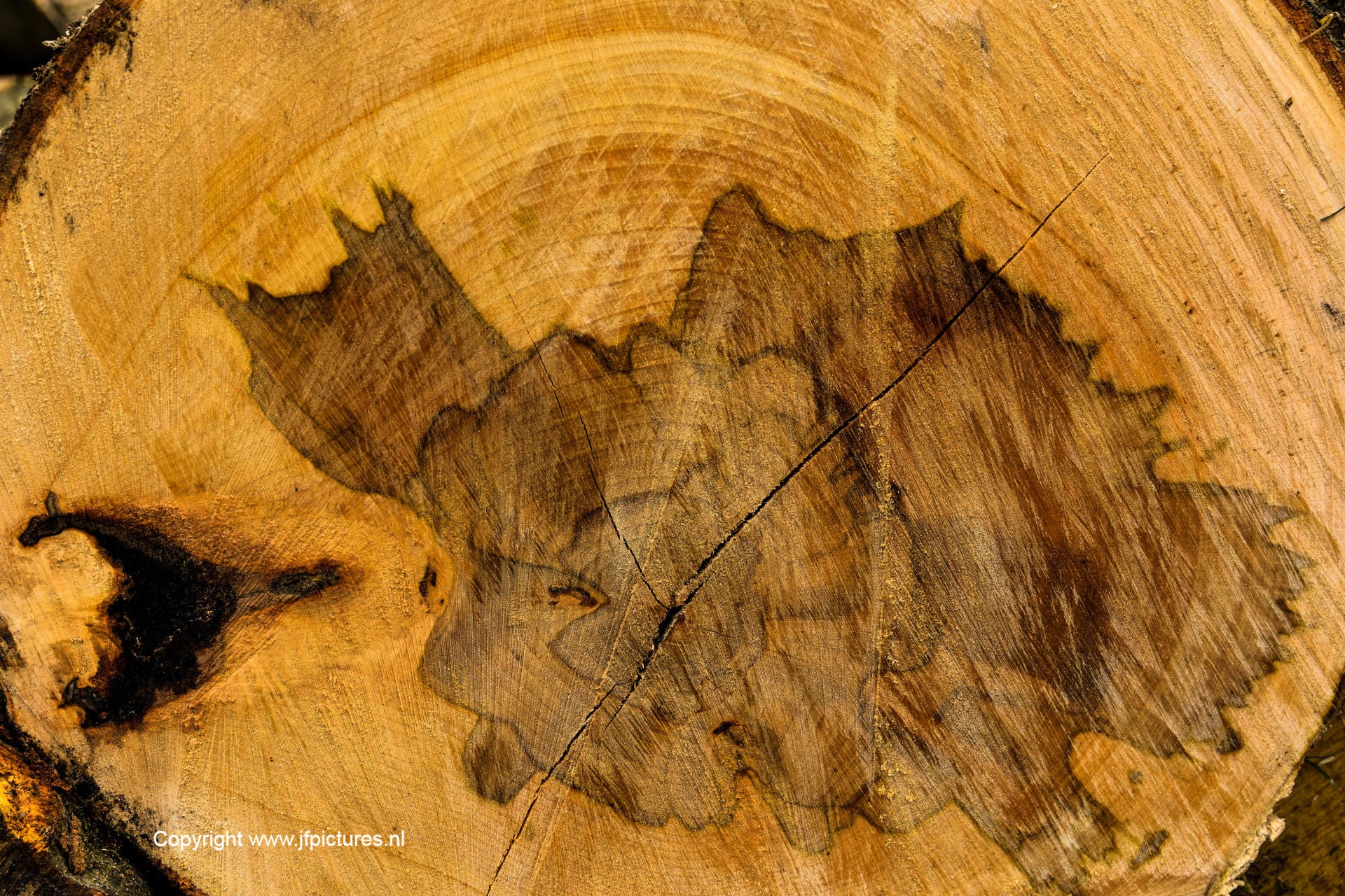 Omgezaagde boom waar de kern uit is verdwenen zonder ingrijpen van de mens