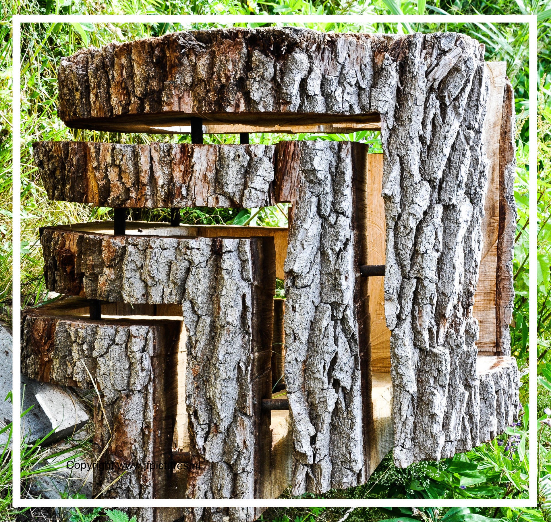 Omgezaagde boom die onder handen is genomen door een houtkunstenaar