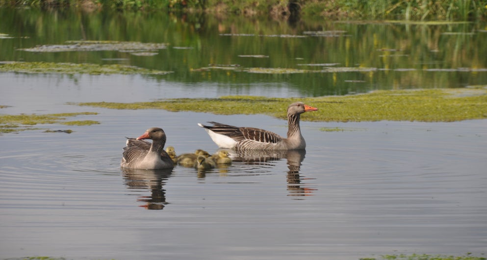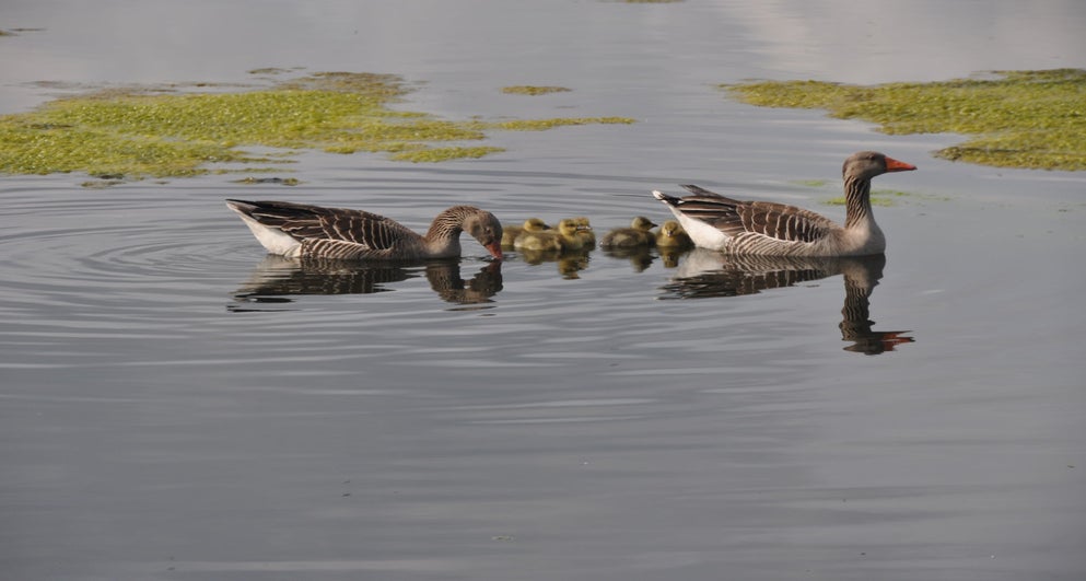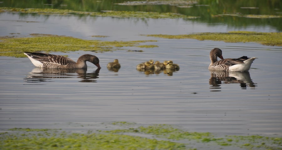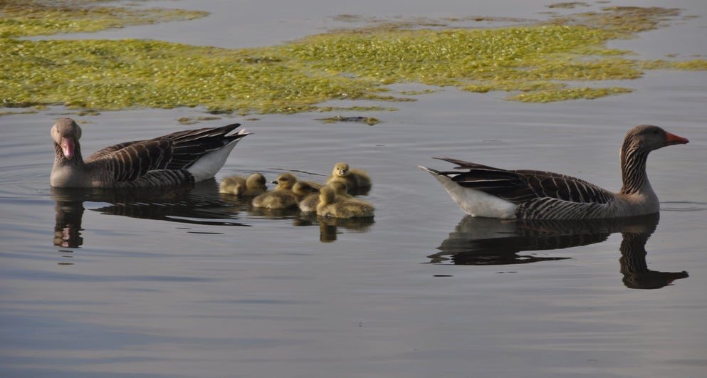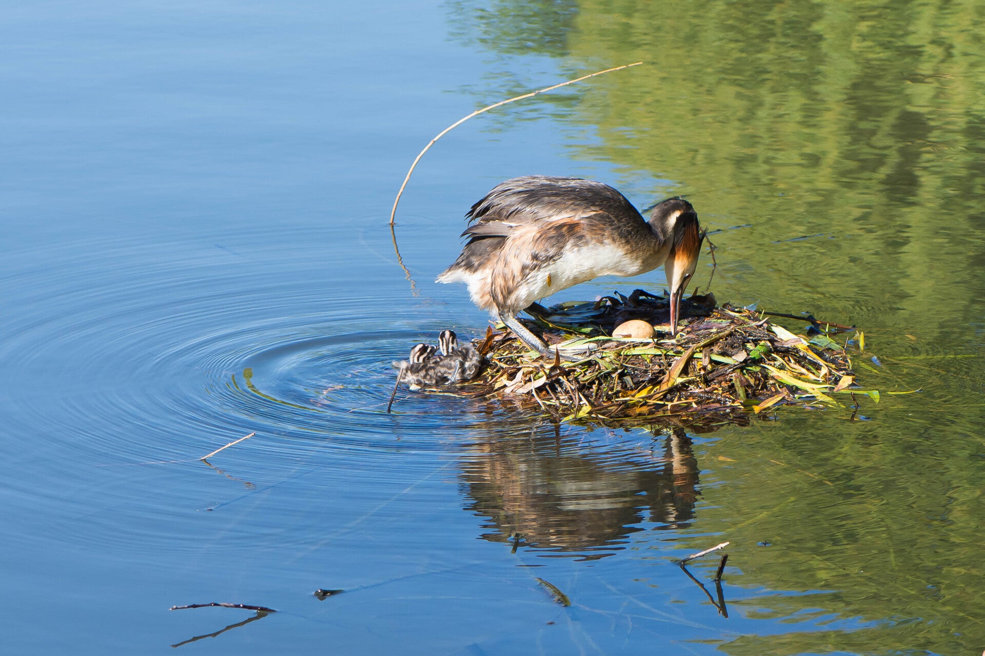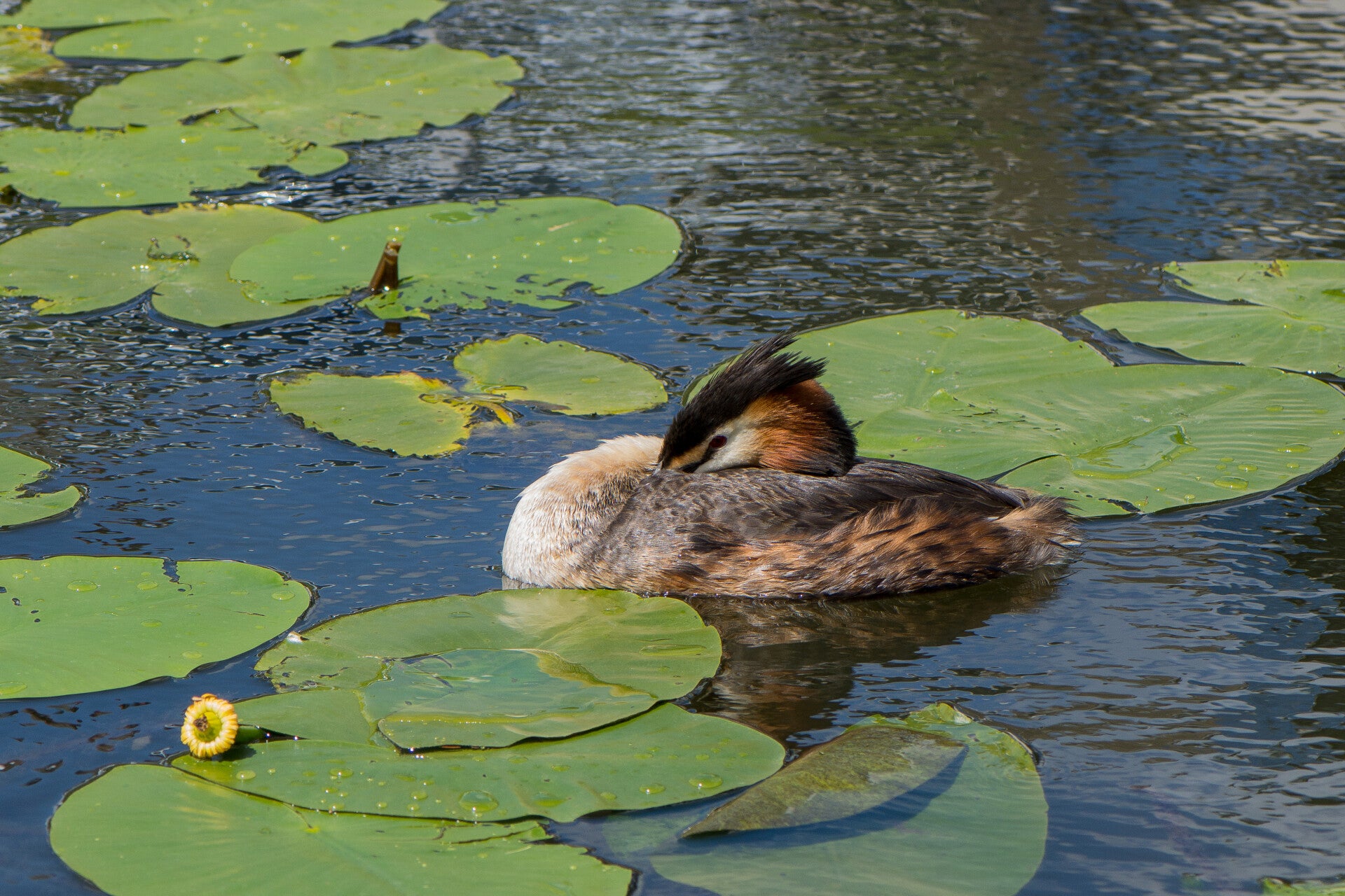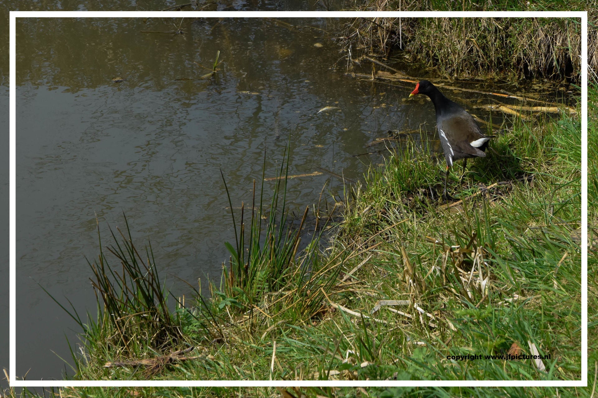 Toch nog even naar buiten. Ontdekt dat de meerkoet toch wel een vreemde nestenbouwer is. Hij / zij sleept grote plompenbladeren naar een wel heel aparte plek. Loopt met het blad via een ketting omhoog, legt het op de steiger en gaat op zoek naar een nieuw blad. Zo ontstaat het nest.