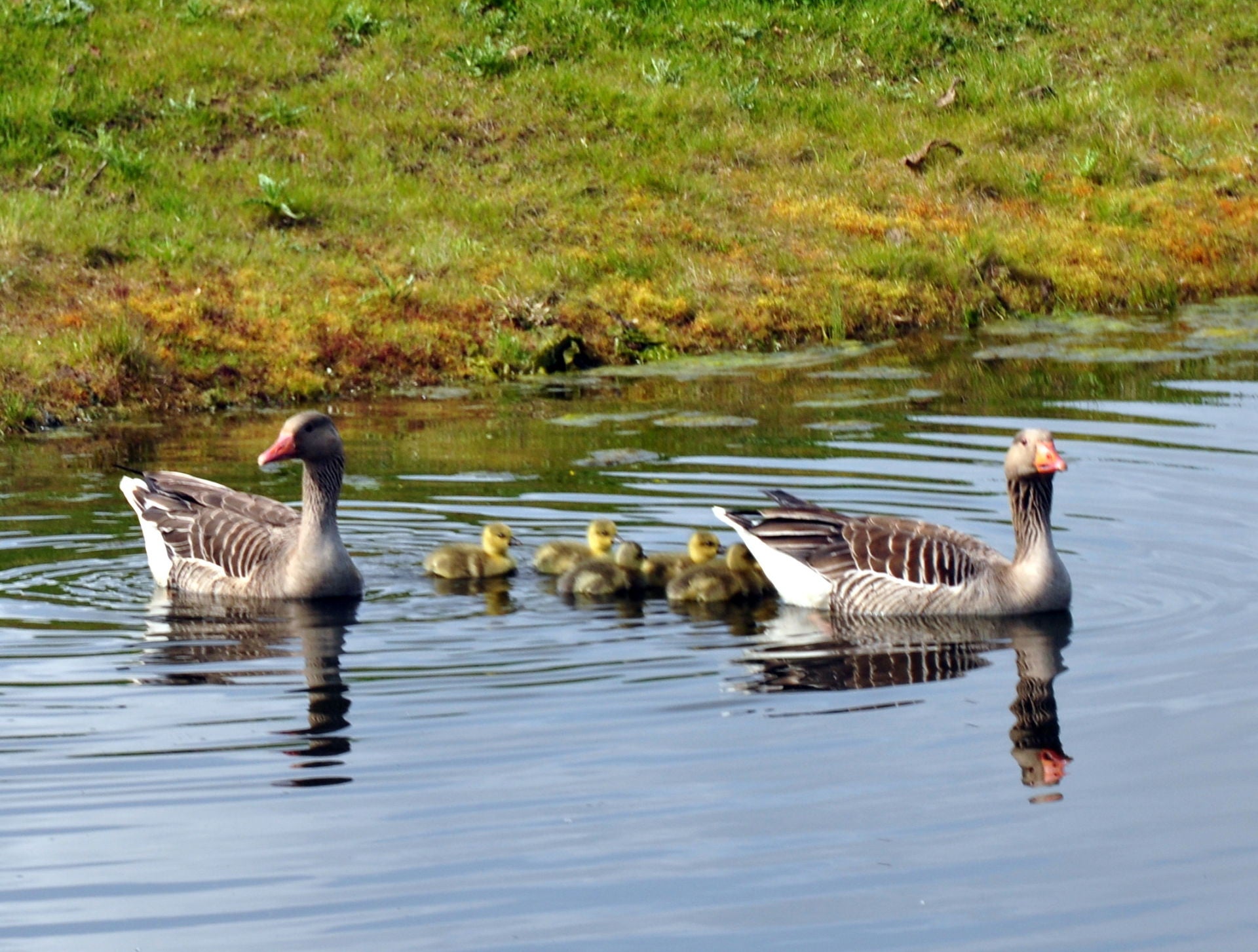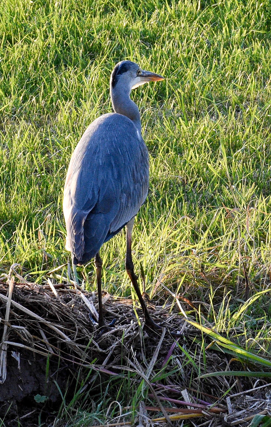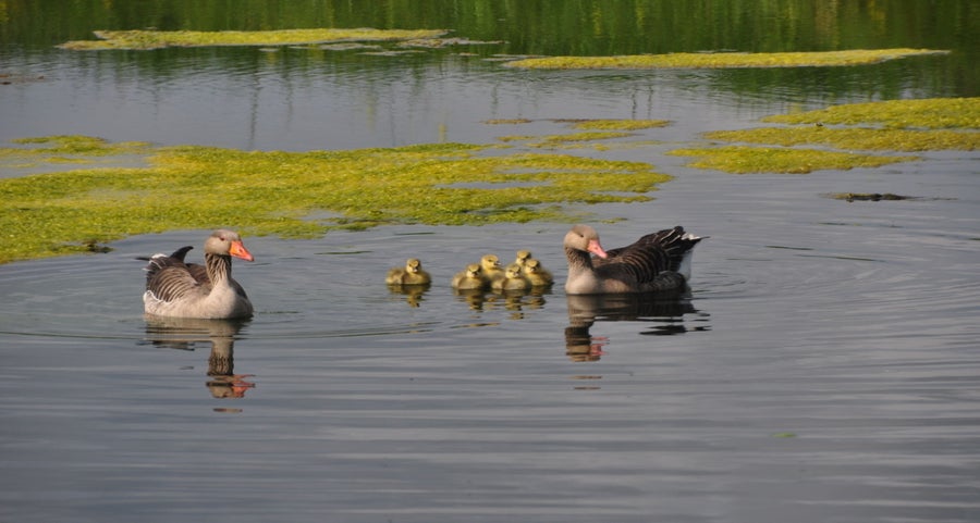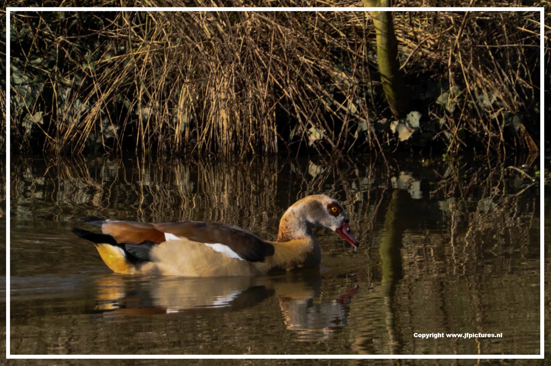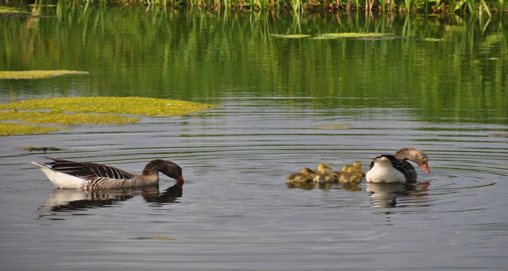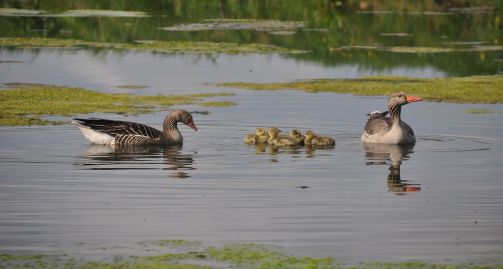 Toch nog even naar buiten. Ontdekt dat de meerkoet toch wel een vreemde nestenbouwer is. Hij / zij sleept grote plompenbladeren naar een wel heel aparte plek. Loopt met het blad via een ketting omhoog, legt het op de steiger en gaat op zoek naar een nieuw blad. Zo ontstaat het nest.